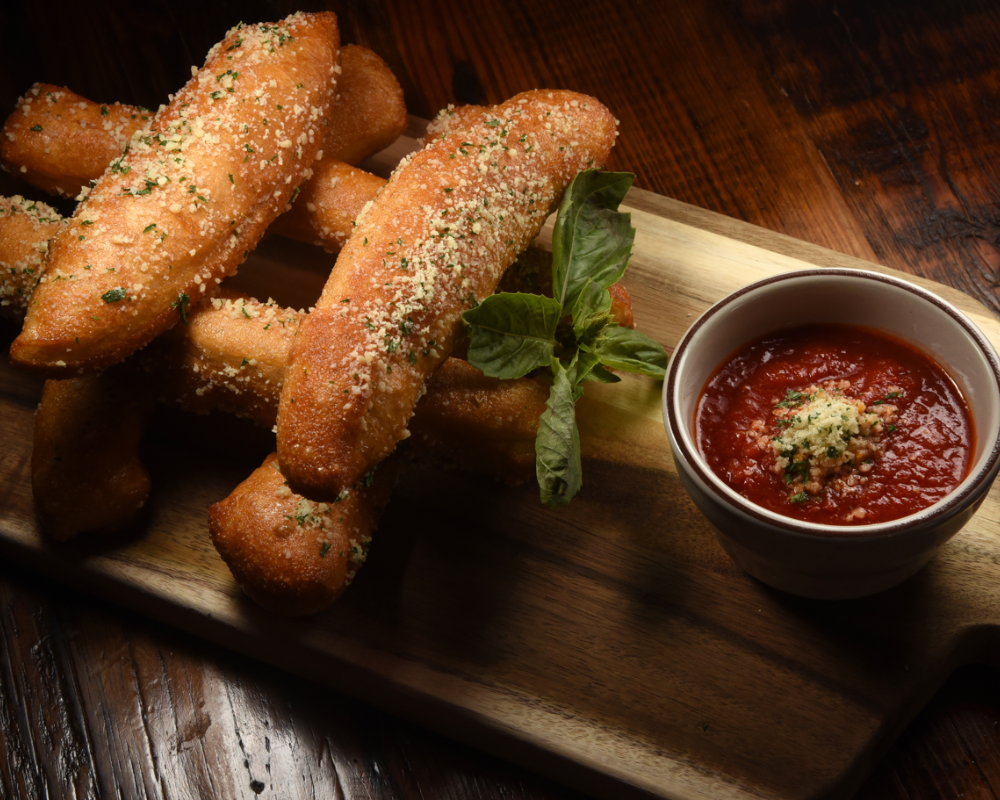 Delicious, gooey mozzarella cheese sticks encased in a crispy breadcrumb coating. Served with marinara sauce for dipping, these cheesy delights are the perfect way to kick off a meal.